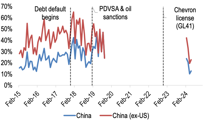 Figure 2b. China’s share of Venezuelan crude exports
